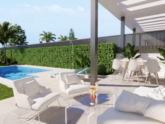 Indulge in modern comfort with integrated air conditioning throughout and a fully equipped, state-of-the-art kitchen featuring premium BOSCH appliances. These exceptional homes are delivered turnkey, boasting professionally landscaped gardens, a private swimming pool, and the finest quality materials used in every detail.